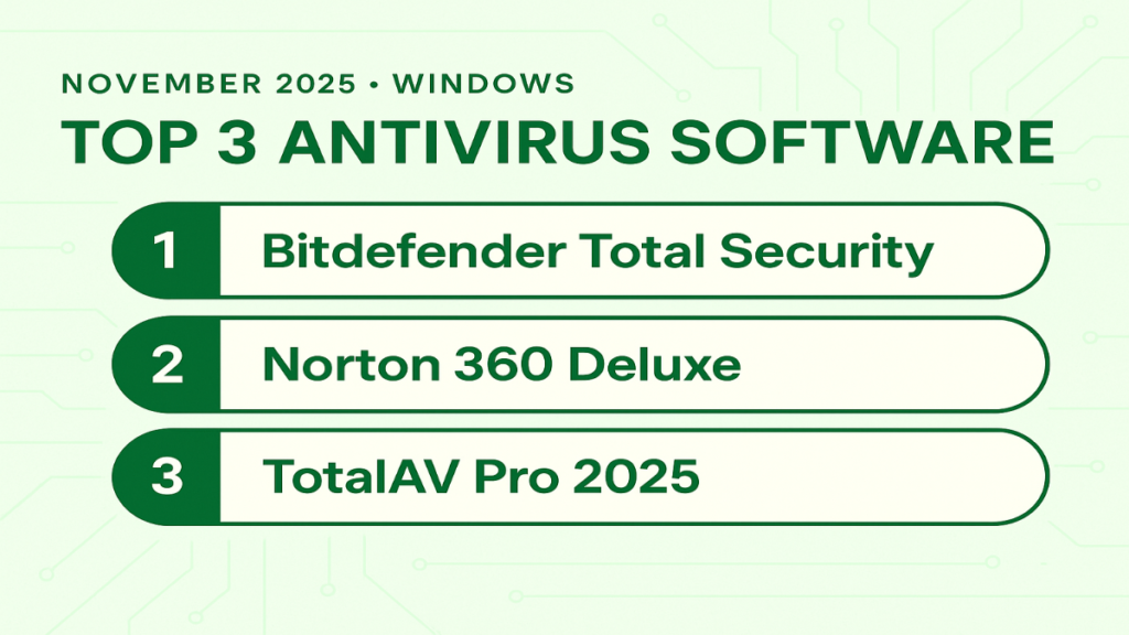 Top 3 Antivirus for Windows – November 2025 Updated Nov 1, 2025…